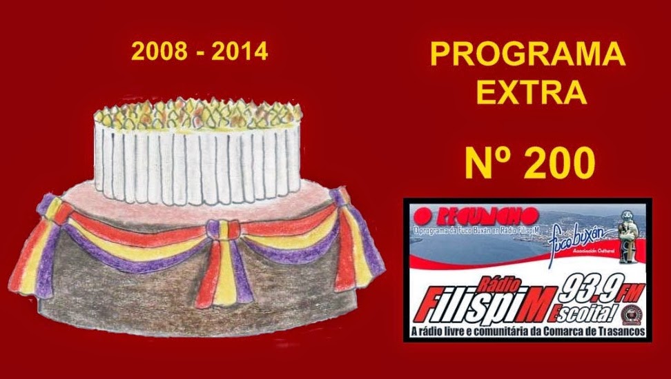 “O Recuncho” nº 200 , programa semanal radiofónico da A.C. Fuco Buxán, PROGRAMA ESPECIAL DE 2 HORAS (*) Celebrando os 200 programas emitidos (2008-2014), con reposicón de temas e entrevistas, novas, libros, poesía, comentarios, música, coloquio, teatro radiofónico …..